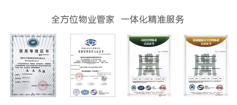 安平物業(yè)成立于2004年,是國家二級物業(yè)管理企業(yè),AAA級信用企業(yè),為政府機關(guān),公檢法,街道,社區(qū),大中院校,醫(yī)院,商場,金融,保險,大中型企業(yè),車站,旅游景區(qū)提供保潔,綠化,食堂管理,消防監(jiān)控,強弱電,中央空調(diào)、電梯、高壓配電、上下水的運行與維護服務(wù)。擁有物業(yè)管理師、強弱電技術(shù)人員、工程技術(shù)人員、通訊維護、計算機網(wǎng)絡(luò)IT員、預(yù)算人員、廚師、面點師、綠化師等各類中高級技術(shù)人才3400余人。是服務(wù)協(xié)會會長單位,先后榮獲朝陽市優(yōu)秀物業(yè)管理企業(yè),遼寧省五一勞動獎?wù)拢|寧省優(yōu)秀示范管理大廈(勞動大廈),遼寧省物業(yè)管理優(yōu)秀項目(一品城小區(qū)),全省就業(yè)先進集體。安平集團引進國際國內(nèi)先進的物業(yè)管理模式,在傳統(tǒng)物業(yè)領(lǐng)域里轉(zhuǎn)型升級,打造一體化、精細(xì)化、規(guī)范化、獨具特色的安平管理模式。